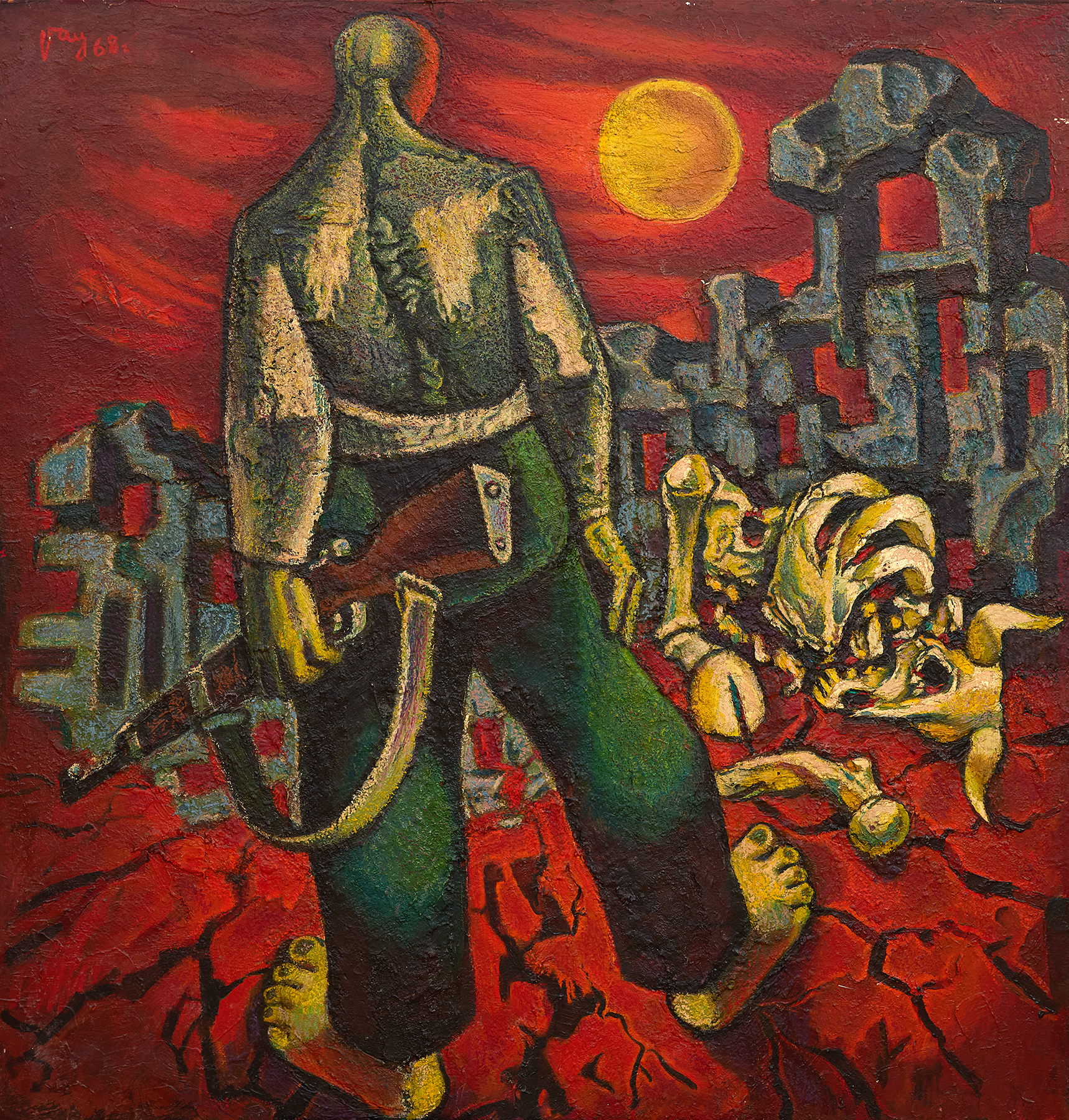 Stefan Gatsev produced the main body of his painting legacy in the 1960s and 1970s. Works from this period include the fundamental large-format figural compositions Concrete, Tracks, Height, and Apocalypse, as well as the polyptych Dawn. He showed these in thematic collective exhibitions, and some of them were awarded prizes. After the mid-1970s, Gatsev devoted himself to decorative monumental art, and his body of paintings was reduced to smaller formats, in which the main role was played by the line – formative, precise, but at the same time, expressive.