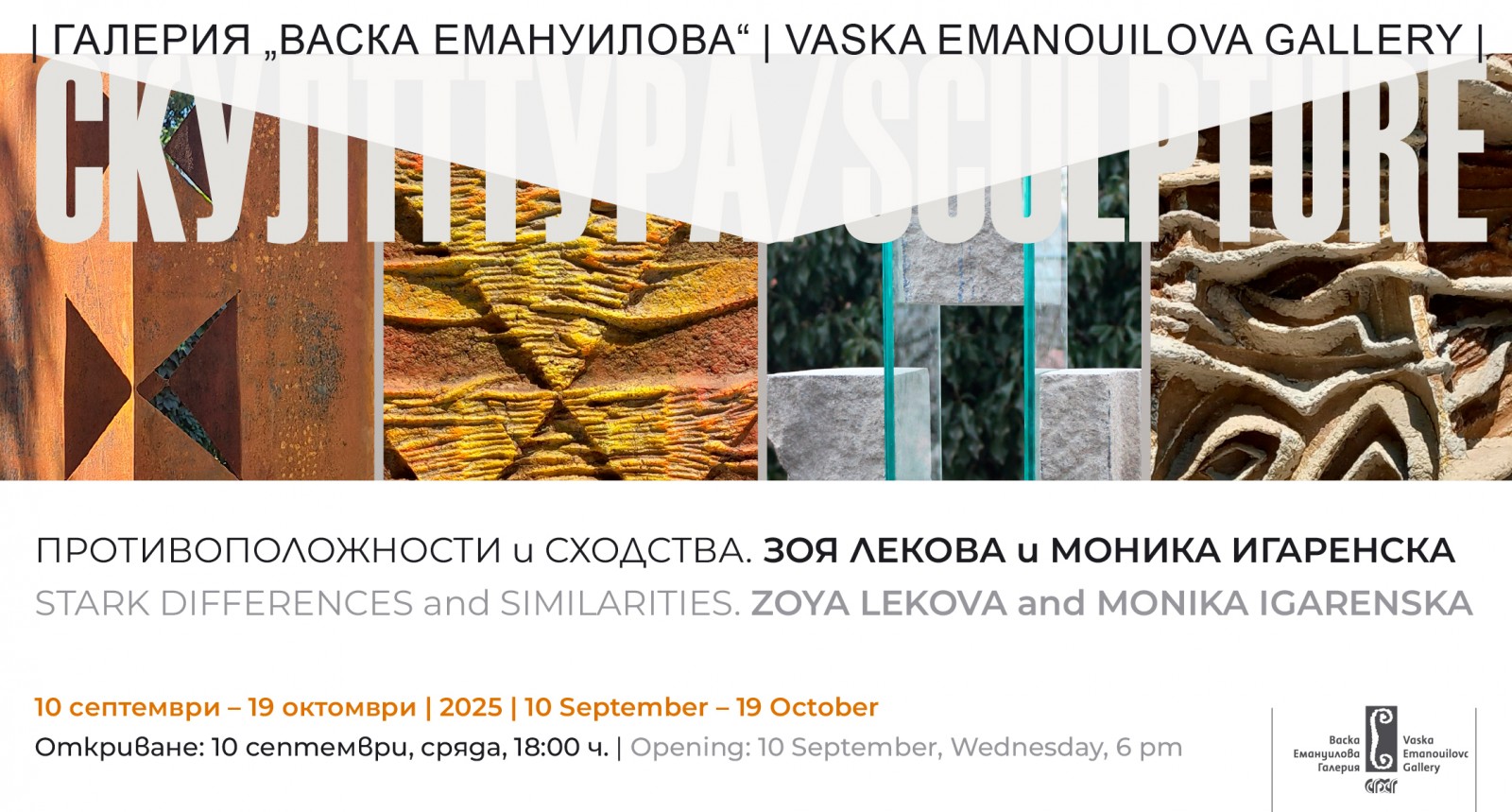 The exhibition of the two artists is held within the "Sculpture" program of the "Vaska Emanuilova" gallery and is part of the special program dedicated to the 120th anniversary of the birth of Vaska Emanuilova.